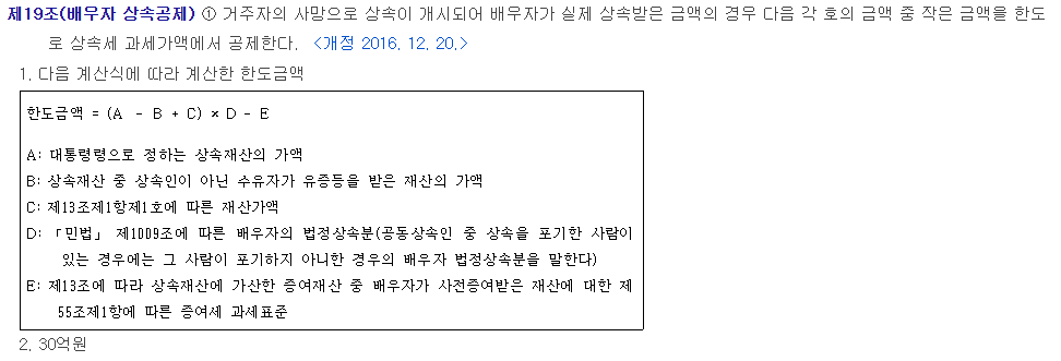 배우자상속공제 한도는 아래와 같이 계산합니다.
