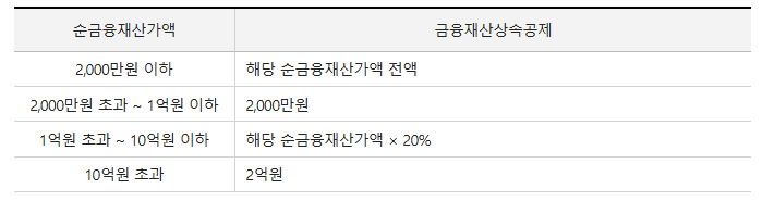 상속재산가액 중 순금융재산의 가액이 있으면 공제해주는 금액입니다.