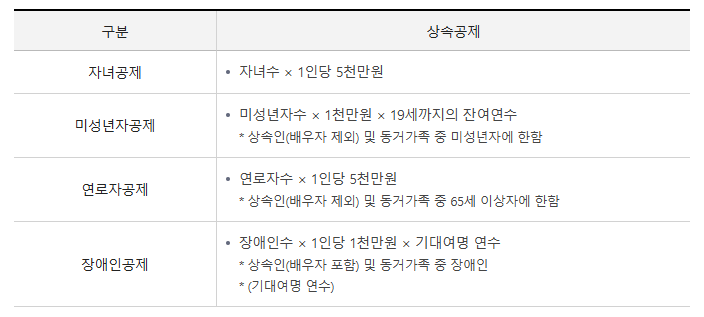앞서 말씀드린 것처럼 거주자의 사망에 대해서만 적용되며, 비거주자는 기초공제 외에는 받을 수 없습니다.