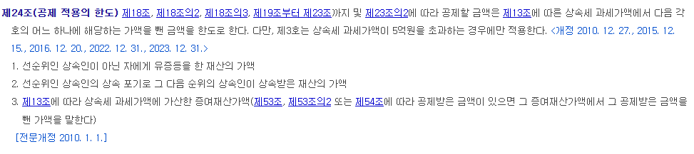 위에서 살펴본 상속공제를 제한없이 인정하는 것은 아니고 종합한도가 있습니다.