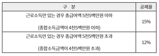- 세액공제 : 10만원까지는 전액 세액 공제(10만원 초과금액은 16.5% 세액공제)